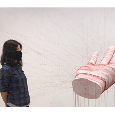 Kyung Hee “Kate” Im is an educator and a visual artist who focuses on sculpture and installation art. Her artwork explores cultural differences, connectedness, intimacy, and isolation which depict the ways people maintain remote relationships, staying connected with digital communication tools and complex networking systems. The sculptures portray bodies that are often fragmented, their parts isolated from one another in space, but also bound together by a network of fragile threads. Those physical threads represent intangible connections, which are in a state of constant flux – sagging down or pulling caught under tension, getting clumped and twisted together, and becoming permanently entangled over time.